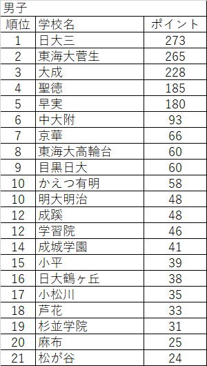 | 順位 | 学校名 | ポイント |