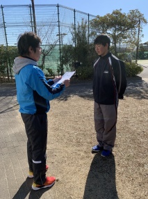 この日は、都大会新人戦ダブルスの日と重なりましたが、試合を終わらせて学校に駆けつけてくれた部員もいました。
