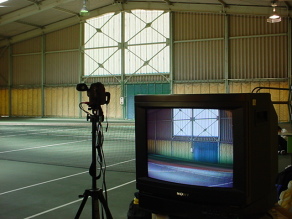 一人一人ビデオで撮影してフォームのチェックをしています。